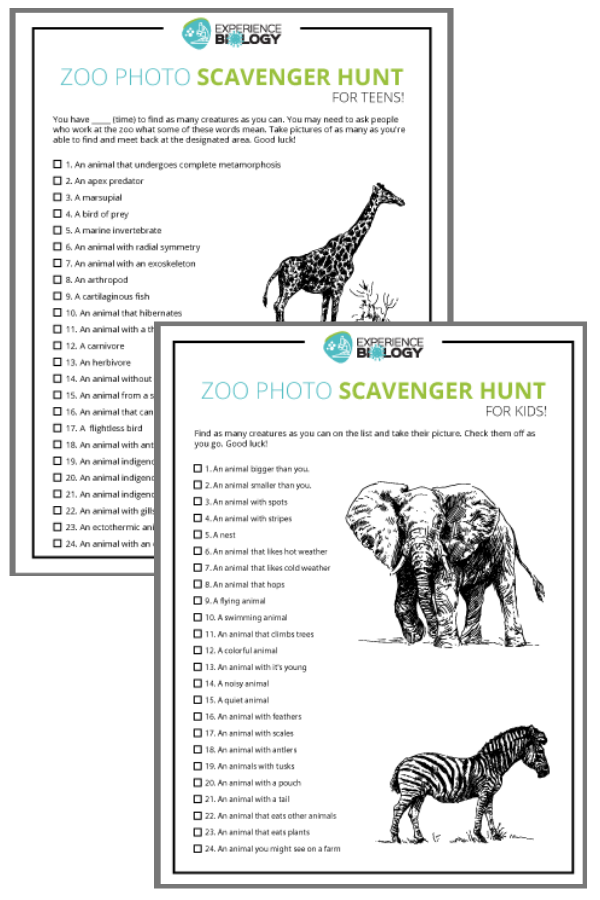 1. Download the zoo photo scavenger hunt below — there’s a teen version and a younger kid version.